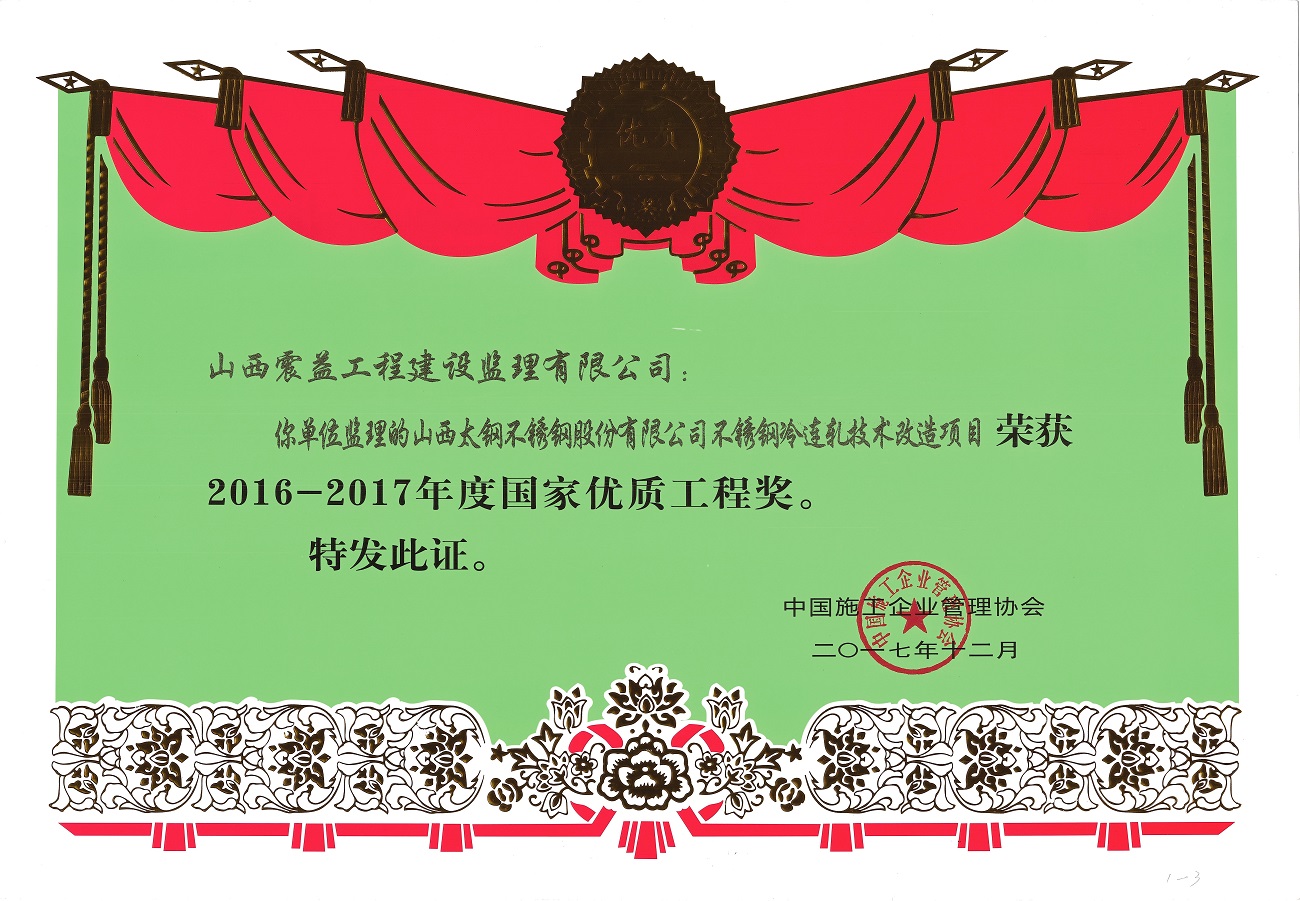 公司先后承擔(dān)了冶金、機(jī)械、電力、礦山、市政、環(huán)保、房屋建筑等工業(yè)及民用建設(shè)大中型工程項(xiàng)目1000余個(gè),足跡遍及國(guó)內(nèi)二十多個(gè)省市,在全國(guó)各地四千余個(gè)制造廠(chǎng)家進(jìn)行了駐廠(chǎng)設(shè)備監(jiān)理,工程監(jiān)理也立足省內(nèi)輻射全國(guó)多個(gè)省區(qū)乃至國(guó)外。多年來(lái),我們憑著嚴(yán)格監(jiān)理、優(yōu)質(zhì)服務(wù)的工作作風(fēng)贏得業(yè)主的信任和好評(píng),受監(jiān)工程質(zhì)量合格率均為100%。由我公司監(jiān)理的太鋼7.63m焦?fàn)t(及配套化產(chǎn))工程、450㎡燒結(jié)工程、4350m3高爐工程、400萬(wàn)噸煉鋼/連鑄工程、2250mm熱軋工程、新不銹鋼冷軋工程、熱軋加熱爐工程、冶煉廢水處理工程、BOC制氧工程、40萬(wàn)噸及50萬(wàn)噸不銹鋼冷軋工程、制鐵煉鋼節(jié)能減排660㎡燒結(jié)機(jī)工程、不銹鋼冷軋光亮板結(jié)構(gòu)調(diào)整工程、型材系統(tǒng)改造一期徑鍛機(jī)工程、加工廠(chǎng)礦渣超細(xì)粉二期工程、2250mm熱連軋罩式爐工程、2250mm熱連軋新建鋼卷表面處理線(xiàn)工程、袁家村鐵礦項(xiàng)目、不銹冷連軋技術(shù)改造工程、硅鋼冷連軋技術(shù)改造工程等等多項(xiàng)工程項(xiàng)目均獲得了“冶金工業(yè)優(yōu)質(zhì)工程”獎(jiǎng);日貸清潔生產(chǎn)90噸電爐工程獲山西省“汾水杯”質(zhì)量獎(jiǎng);太原濱河小區(qū)、19宿舍、太鋼2*300MW自備電廠(chǎng)、太原市不銹鋼工業(yè)園區(qū)等工程獲太原市“******文明施工樣板”工地;太鋼不銹2*300MW自備電廠(chǎng)改擴(kuò)建煙筒構(gòu)筑物工程、太鋼2*300MW空冷供熱機(jī)組儲(chǔ)煤筒倉(cāng)建筑工程、山西太鋼不銹鋼科技冷軋精密帶鋼工程等獲“山西省優(yōu)良工程”;1350 m3高爐、400萬(wàn)噸煉鋼/連鑄工程獲得******建設(shè)工程“魯班”獎(jiǎng)、不銹冷連軋技術(shù)改造工程獲“******優(yōu)質(zhì)工程獎(jiǎng)”。太鋼150萬(wàn)噸不銹鋼系統(tǒng)工程同時(shí)獲******“建國(guó)60年來(lái)經(jīng)典暨精品工程”獎(jiǎng)、“******優(yōu)質(zhì)工程金質(zhì)獎(jiǎng)”、******工程建設(shè)“魯班”獎(jiǎng)三項(xiàng)大獎(jiǎng)。