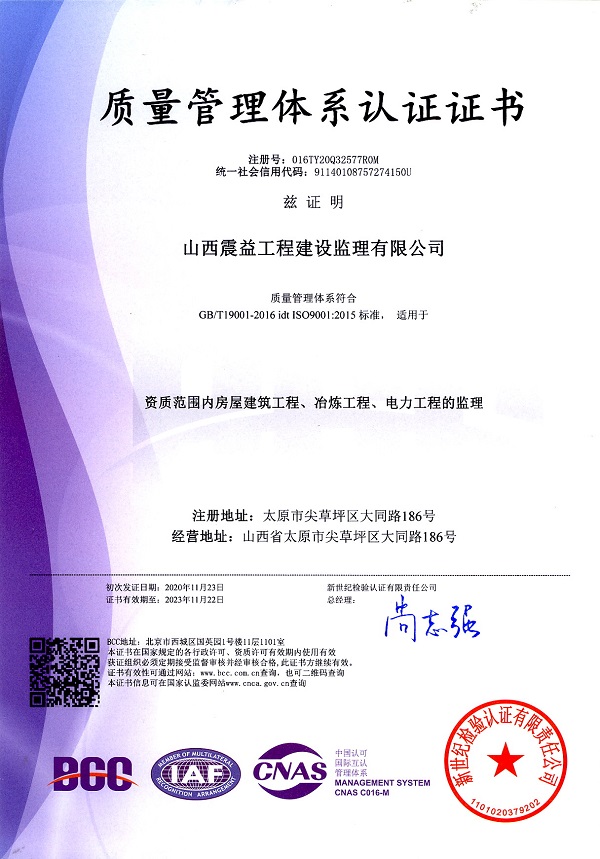 山西震益工程建設(shè)監(jiān)理有限公司【原太原鋼鐵(集團(tuán))工程建設(shè)監(jiān)理有限公司】成立于 1998年4月,注冊(cè)資金 600 萬(wàn)元,是******批準(zhǔn)的具有甲級(jí)執(zhí)業(yè)資質(zhì)的綜合性工程咨詢(xún)服務(wù)企業(yè),具有冶煉工程、電力工程、礦山工程、房屋建筑工程、市政公用工程等5個(gè)工程監(jiān)理甲級(jí)資質(zhì)和設(shè)備監(jiān)理甲級(jí)資質(zhì)。主要業(yè)務(wù)涉及冶金、房屋建筑、礦山、電力、市政、機(jī)械、環(huán)保等領(lǐng)域的工程建設(shè)監(jiān)理、設(shè)備監(jiān)理、工程咨詢(xún)、造價(jià)咨詢(xún)、檢測(cè)試驗(yàn)等。公司建立了質(zhì)量ISO9001:2015標(biāo)準(zhǔn)、環(huán)境ISO14001:2015標(biāo)準(zhǔn)、職業(yè)健康******GB/T28001-2011 idt OHSAS 1800:2007標(biāo)準(zhǔn) “三標(biāo)一體”管理體系,是中國(guó)設(shè)備監(jiān)理協(xié)會(huì)常務(wù)理事、中國(guó)冶金建設(shè)監(jiān)理協(xié)會(huì)常務(wù)理事和山西省監(jiān)理協(xié)會(huì)副會(huì)長(zhǎng)單位。